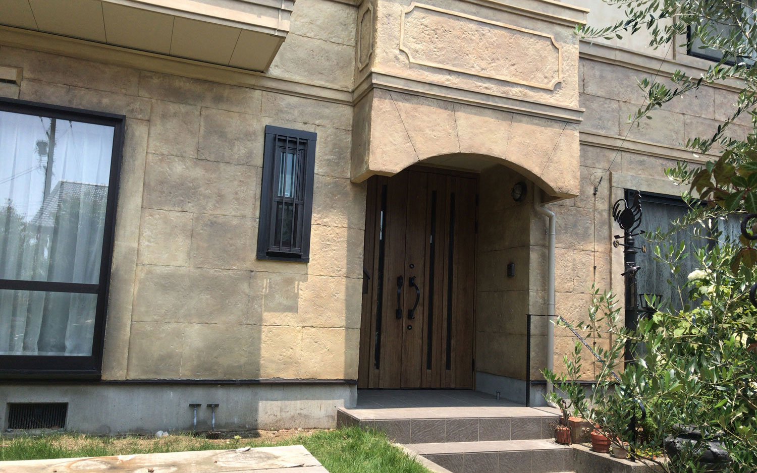 デコラティークヴォレー(鎧戸)は窓の左右に取り付けます。実際には開閉できませんが、装飾として建物の雰囲気をオシャレに装います。材料は実際の木材ではありませんが、EPSの上にウレタンコーティングをし、特殊塗装により本物の木のように見せます。これによって腐食やメンテナンス等の心配なく楽しめます。